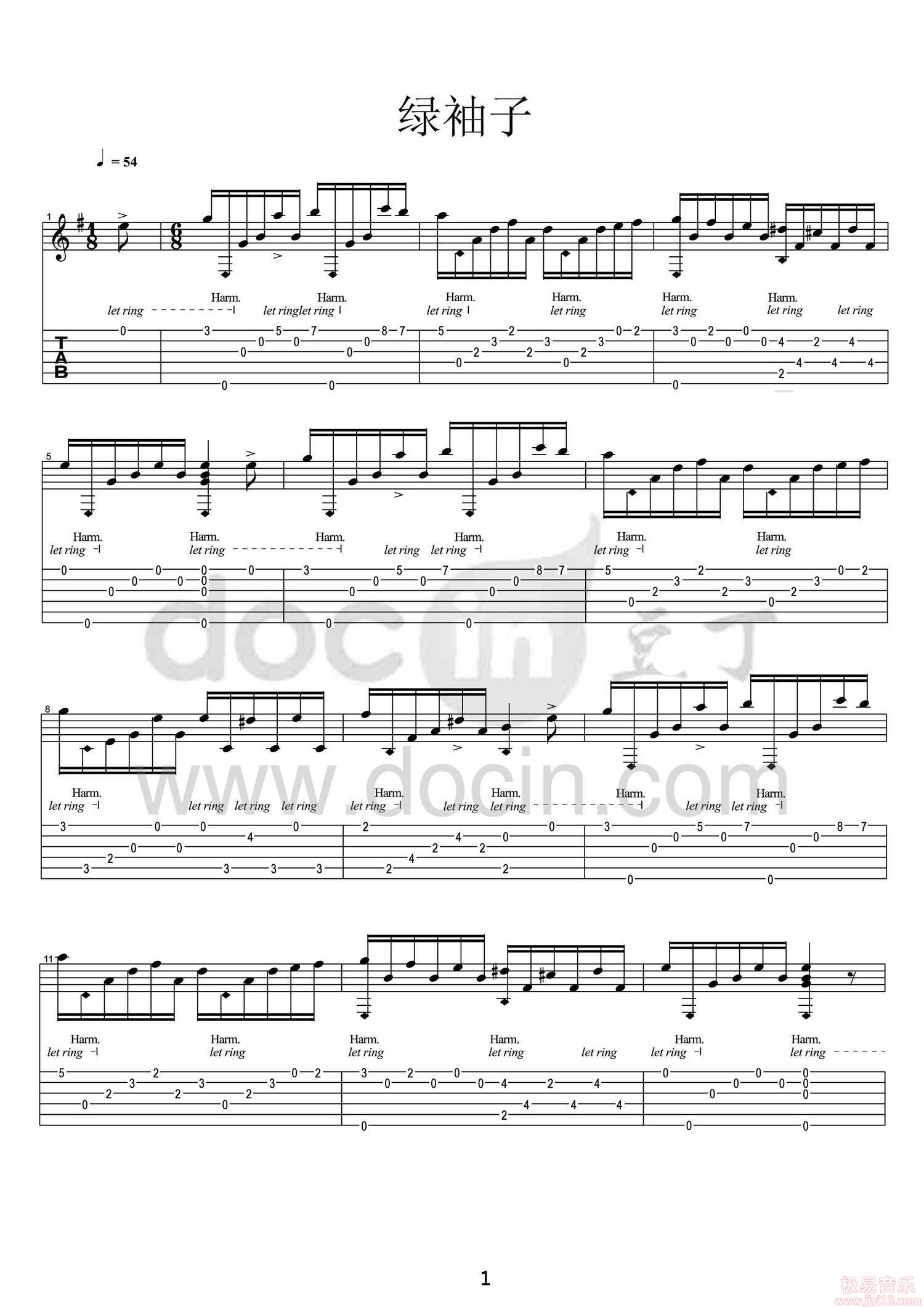 《绿袖子》高清吉他指弹独奏谱+视频示范