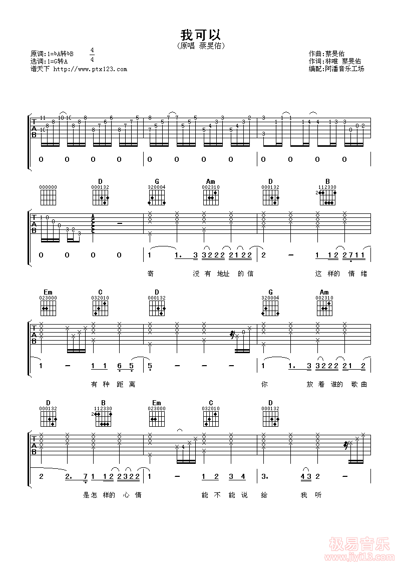蔡旻佑《我可以》高清吉他弹唱谱G调完美版原版编配