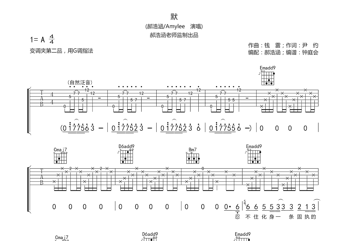 【下载】郝浩涵《默》高清吉他谱弹唱谱A调完美版原版编配+视频示范 曲谱高清无水印 资源下载此资源下载价格为5易币,请先登录1易币=1元! 标价仅展示,充值不了!需要资源加下面微信发红包获取,最低充值30,用不完的发用户名,人工冲到网站留着用! 登录收藏 说清楚问题,看清楚价格!墨迹不要问!讲价不要问!不信不要问!直接拉黑!