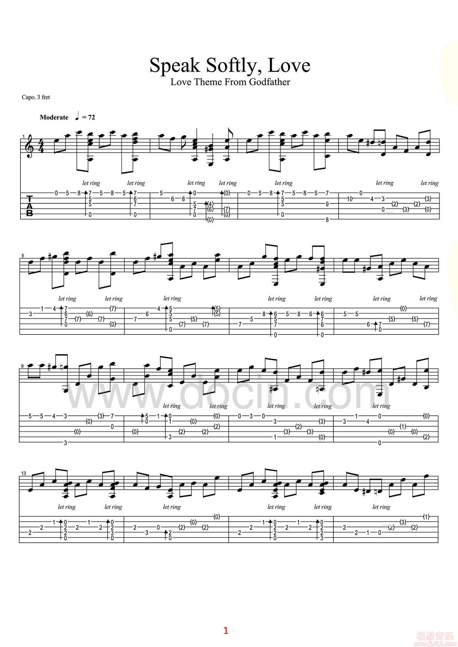 《教父》主题曲高清吉他指弹独奏谱+视频示范