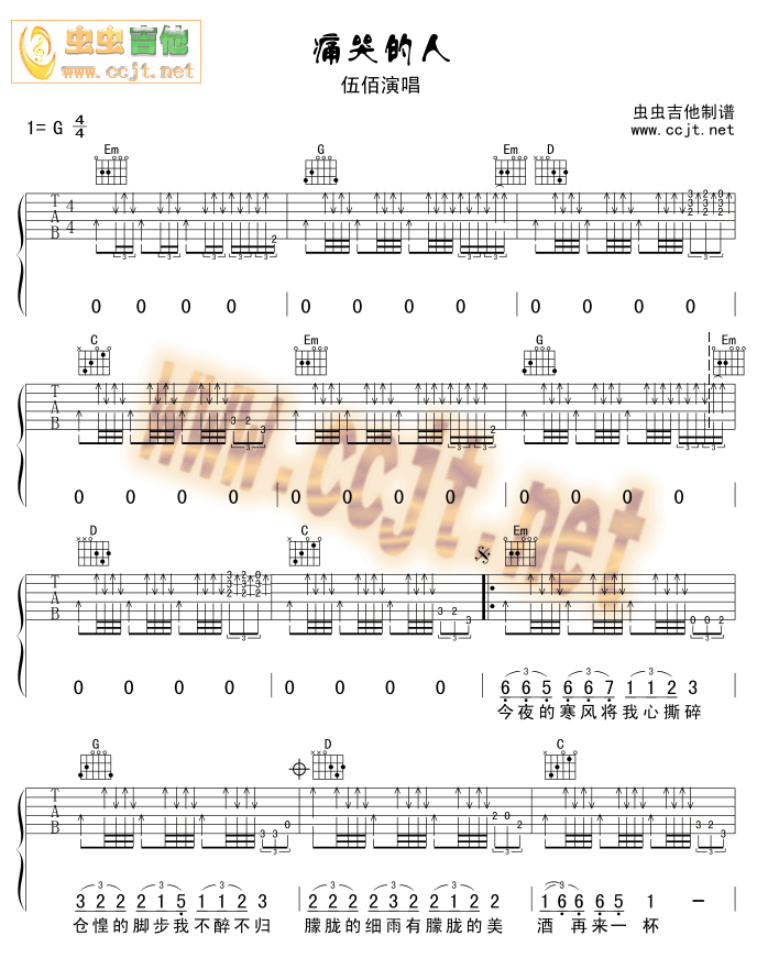 伍佰《痛哭的人》高清吉他弹唱谱G调完美版原版编配+视频教学 现场版 吉他教学版 吉他示范版,仅供参考 是一首训练扫弦节奏的好歌 123显示全文 登录收藏 说清楚问题,看清楚价格!墨迹不要问!讲价不要问!不信不要问!直接拉黑!