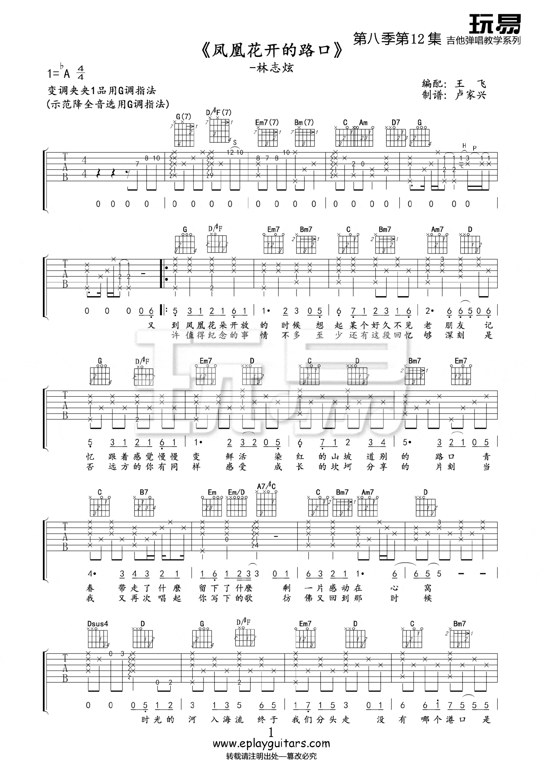 林志炫《凤凰花开的路口》高清吉他弹唱谱bA调完美版原版编配+视频教学